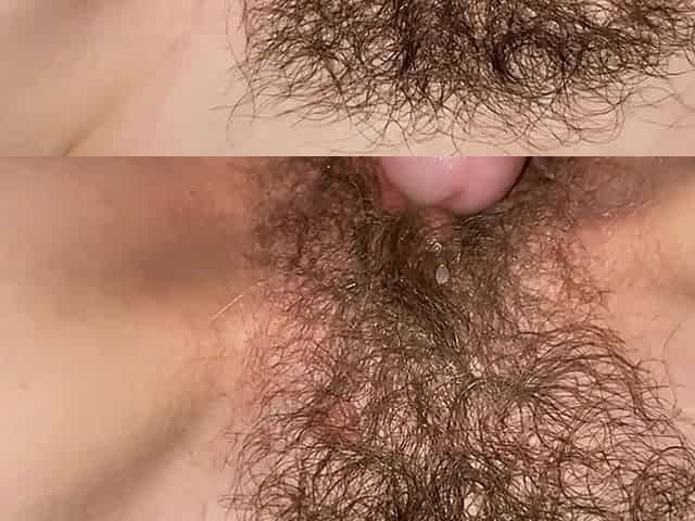 Quick Cumshot on Hairy Pussy Bush in Missionary