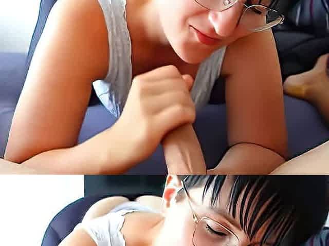 Amateur quickie Blowjob by shy sexy brunette girlfriend