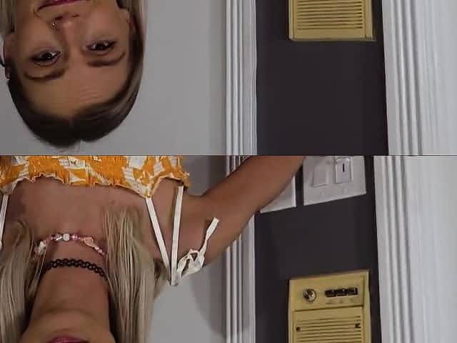 Quickie anal sex with adorable blonde neighbor Bella G on the sofa