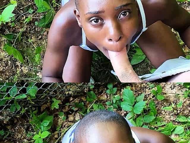 German Black Ebony Teen Quick Outdoor Sex with white Guy