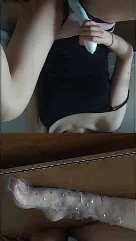 Nice gal in Cute tights quick twat play