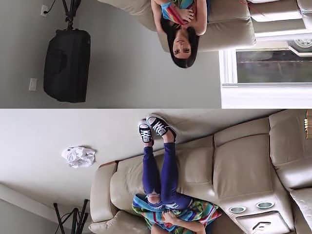 Horny lesbian babes couch quicky