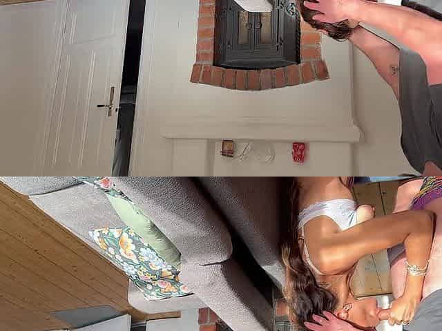 Quick and risky hookup in the living room with a horny girlfriend before the landlady catches them