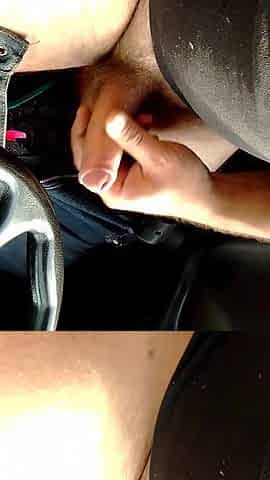 Quick jack off in a parked car with spunk flow