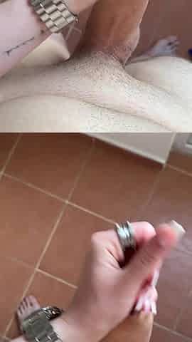Quick Tugjob Spunk fountain with Wristwatch, Ring and lengthy Nails