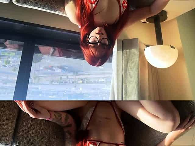 Fiery Redhead Massive Melons Full Body Tease
