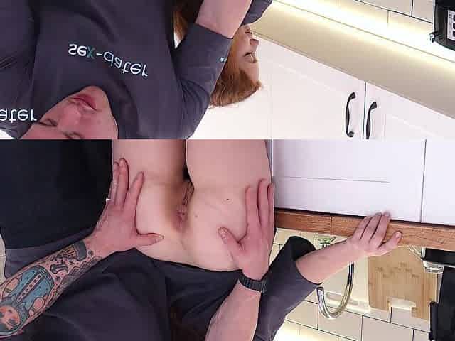 Audrey Hollander And Otto Bauer In Otto Fucks Audreys Latex-covered Ass On The Counter!