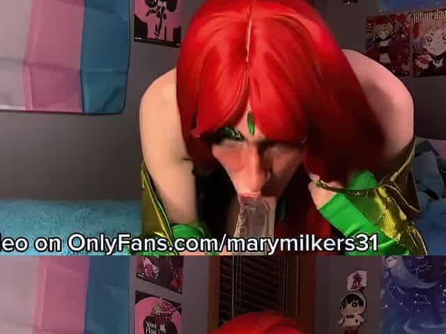 Stylish redhead teen Noi Feja is sucking her lovely dildo after soloing