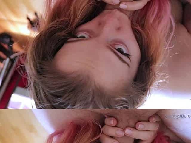 Curvy redhead jap MILF giving blowjob and titjob in POV