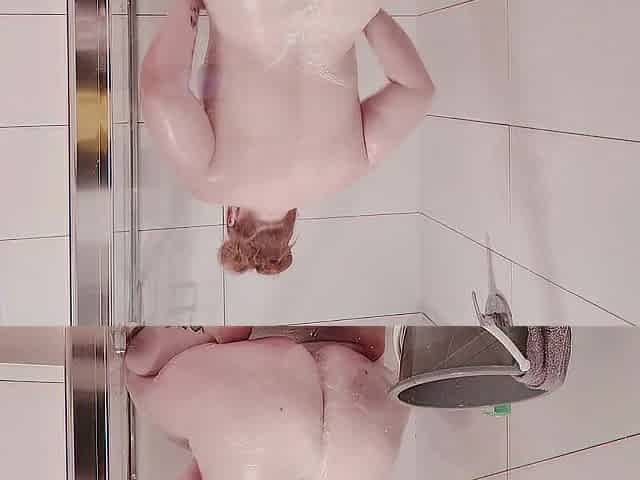 Overweight red head has to bathe from a bucket cuz her sexy water broke