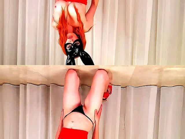Red Xxx gets playful in her home office