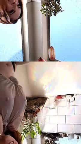 Touching and humping my large schlong in the shower and cumming riskily in the babes's bath