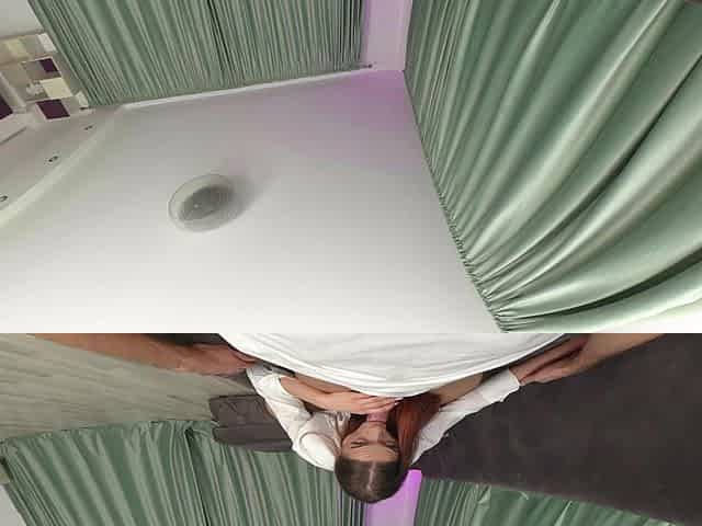 Foxy jap redhead in big boobs blowing loaded cock with lust