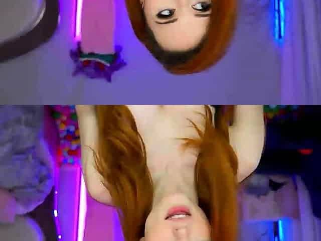 Hot teen redhead toying her pussy on webcam