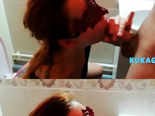 Redhead Babe Gets a Mouthful of Cum in the Toilet