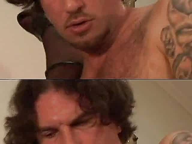 Tattooed redhead chick pounded in threesome double fuck on the bed