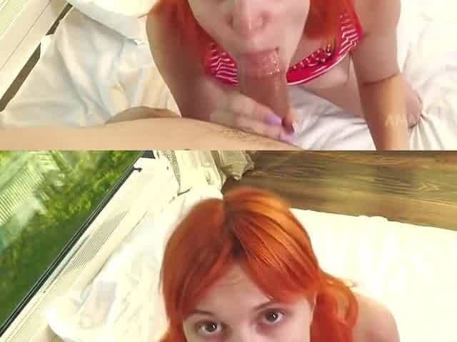 Redhead College Girl In White Shirt Blowjob And Fuck From Behind She Loves Cum On Face