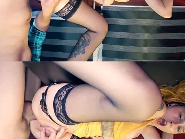 Sitting creampie compilation with a red-haired hoe who loves riding
