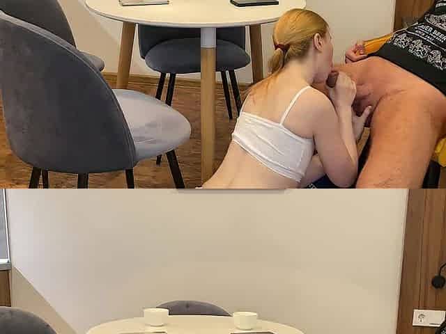 Red hair big boobs ass fucking on the table cum on tits