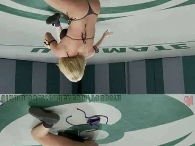 Large Breasted Golden-haired kicks Small Blonde Gal's Butt