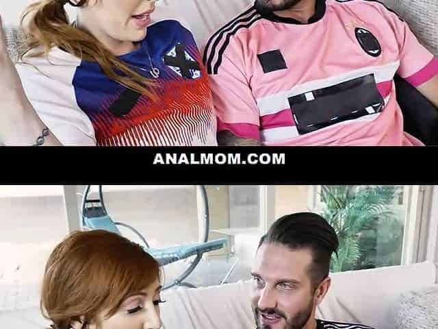Busty redhead MILF fucked in the ass after losing a soccer bet