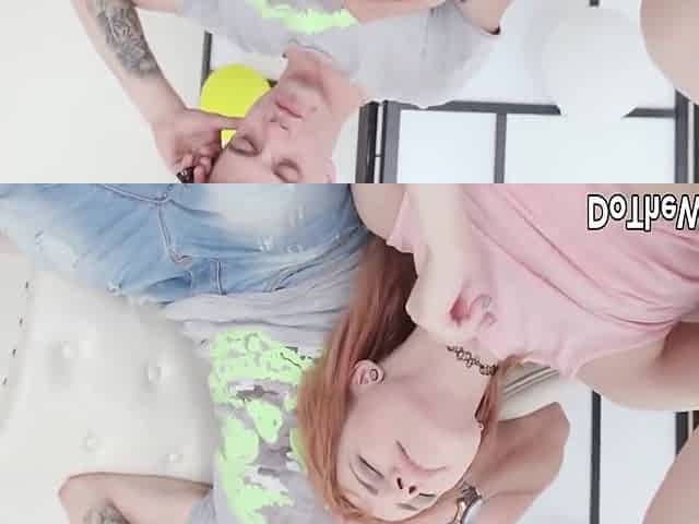 Asian lez MILF sticks toe in redhead asshole after rimming