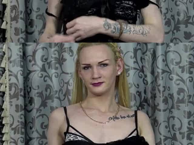 FEMOUT.XXX: Glamorous golden-haired Russian t-girl masturbates her butt with sex-toy.