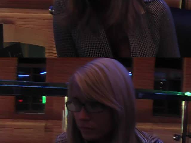 Disappointed brunette hair with large boobs is getting banged in the restaurant, in front of her spouse