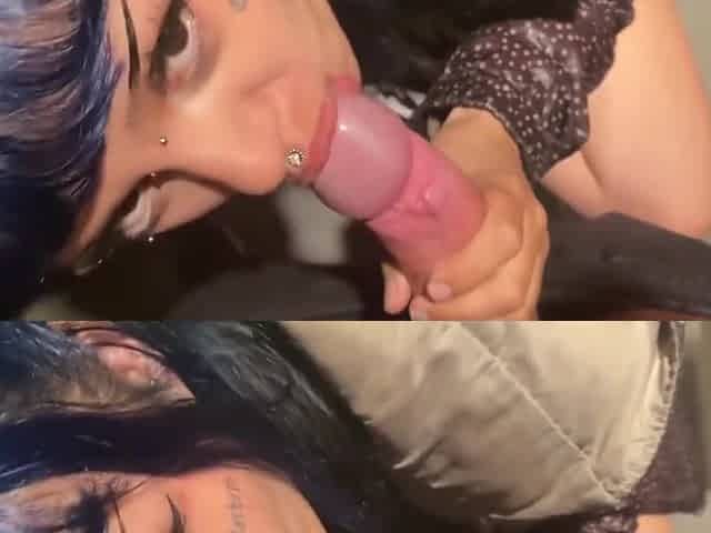 She gives a blowjob to his cock in the restaurant restroom before a nail at home