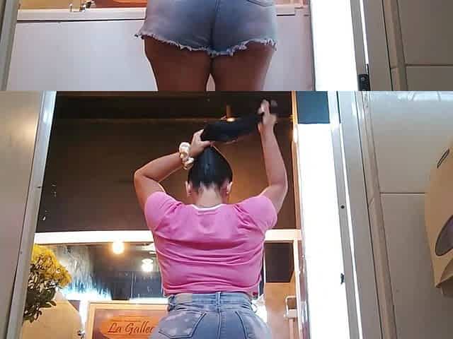 Eating pussy in restaurant public bathroom and fighting the moaning