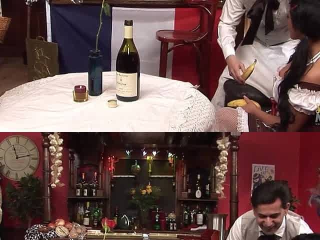 Three big titted babes get rough double penetration from horny clients at the restaurant