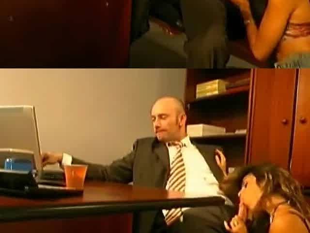 Blond Nympho with Round Tits Rides a Big White Dick in Office