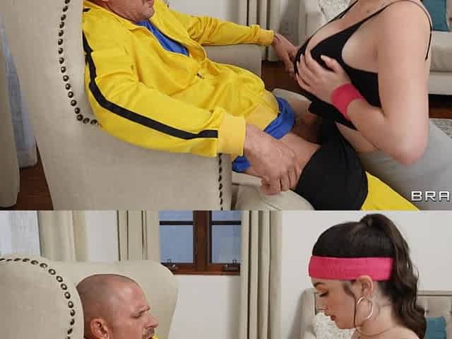 Watch this naughty ponytailed blonde seduce her stepdad with her exceptional riding skills! She's caught cheating, but she just