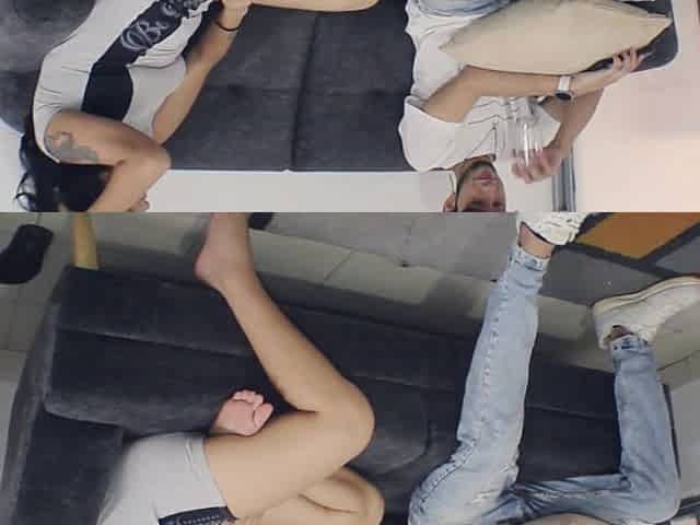 Helping her stretch and getting her pussy fucked on his big cock
