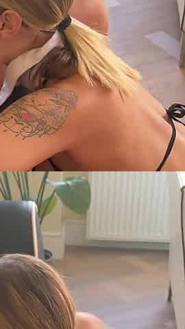 Redhead and Tattooed Babes Wild Couch Fucking Sessions