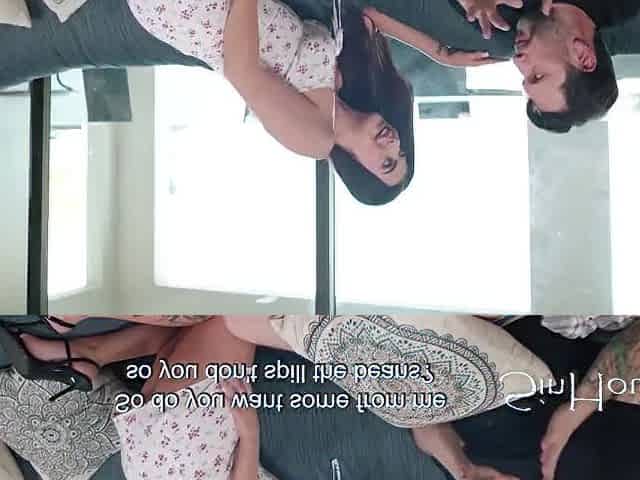Brunette hair stepsister gets a hard butt pounding