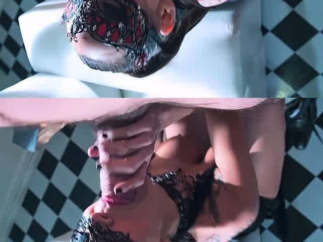 Gothic Gal with Large Bazookas in Red Underware Rides a Large Jock