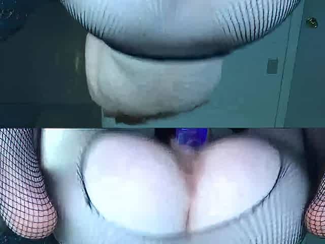 Slutty Girl In Fishnet Exposes Her Hot Feet While Riding A Purple Dildo On The Floor