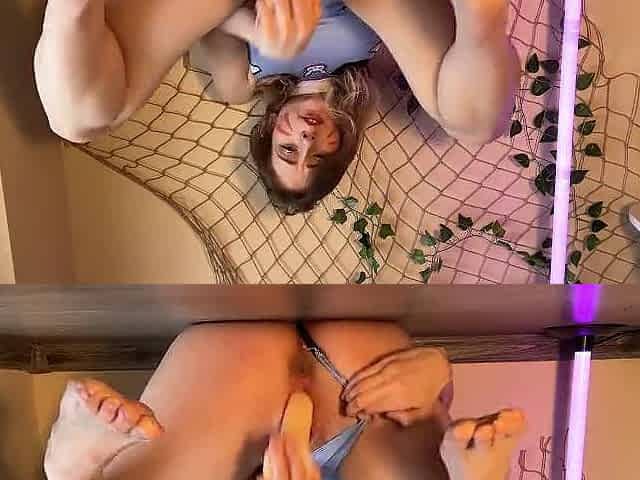 Hot amateur chick riding toy and fingering on webcam