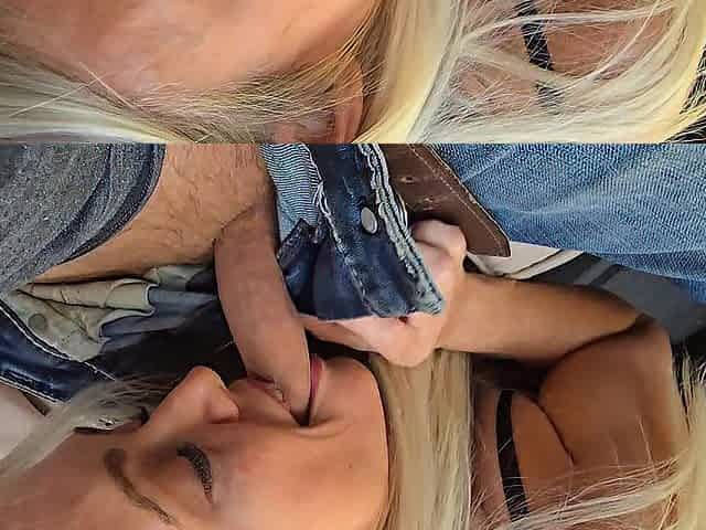 Hot blonde cutie sucks my cock and begs me to bang her doggystyle