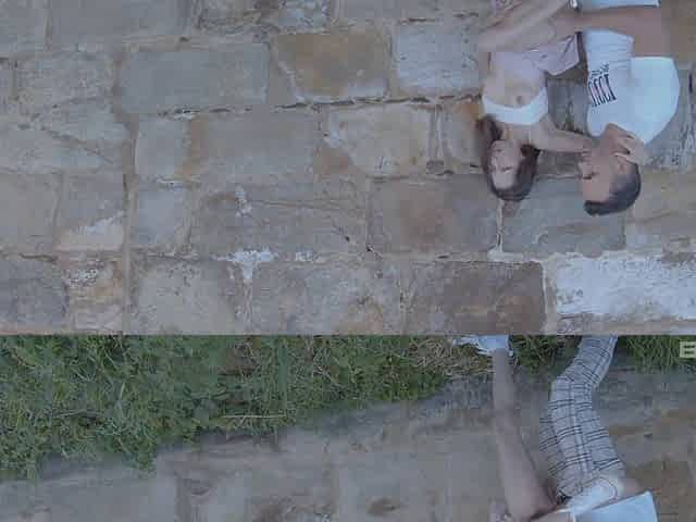 Skinny teen lifts her skirt for risky outdoor fuck - Bang