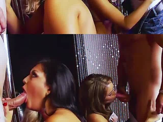 Hot Latina Riding Cock While Sucking Another Big Shaft