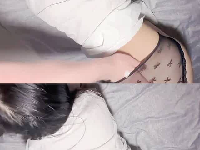 Seductive chinese girl is riding a cock like a real cowgirl in her bf's shirt