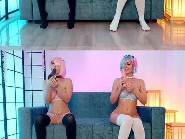 Big tits cosplay girl and her alter ego are having fun with toys