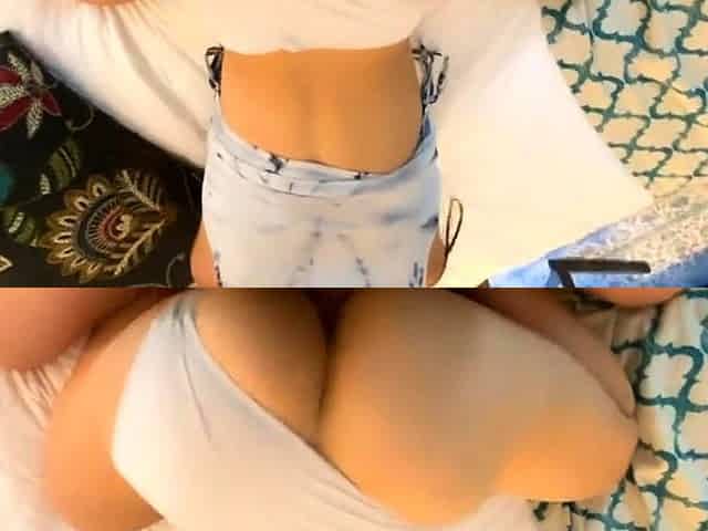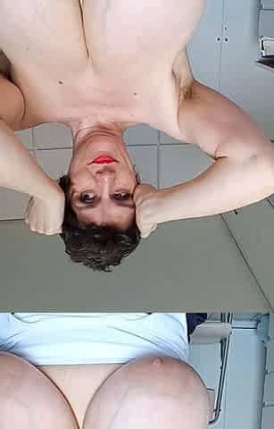 wife rides a giant rod looking back in the mirror - pov - underware -