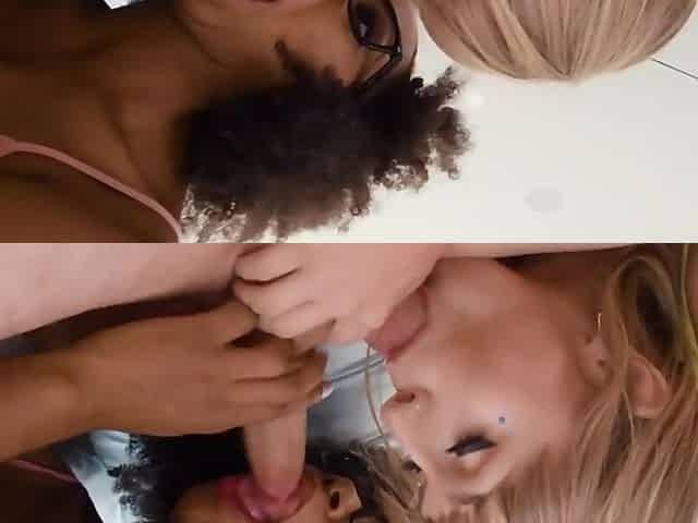 Short guy fucks Ebony and white babe in foot fetish 3some