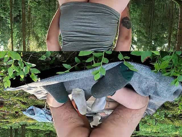 European blond rides dick with her butt in the forrest