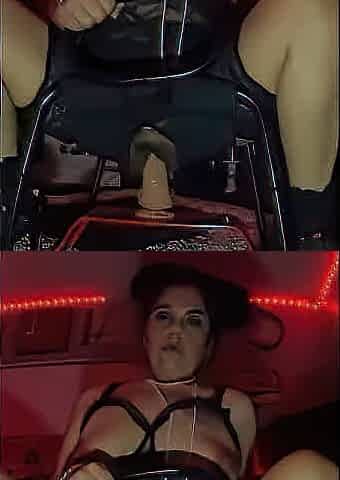Pretty lady with big tits rides a fucktoy on cam