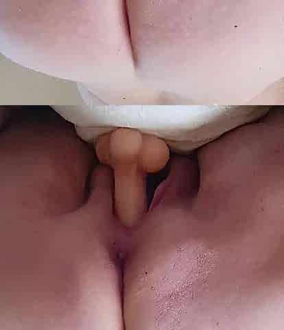 Creampied juicy oozing cunt cowgirl riding a large sex tool
