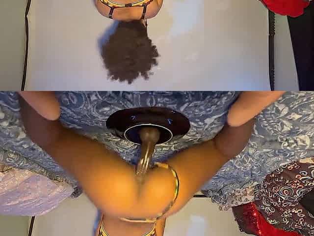 Oiled Ebony Ass Dildo Riding in Public